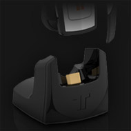Avoid misplacing your SwitchBlade by utilizing its convenient docking base. A useful power pass-though port provides an alternative method for powering up the headset’s built-in rechargeable battery - - plug the included USB charge cable directly into the headset or into the docking base while the headset is safely nestled within.